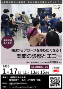 1月のレジデントデイは明日からプローブを持ちたくなる!関節の診察とエコー 講師はエコーの魔術師:城田先生!